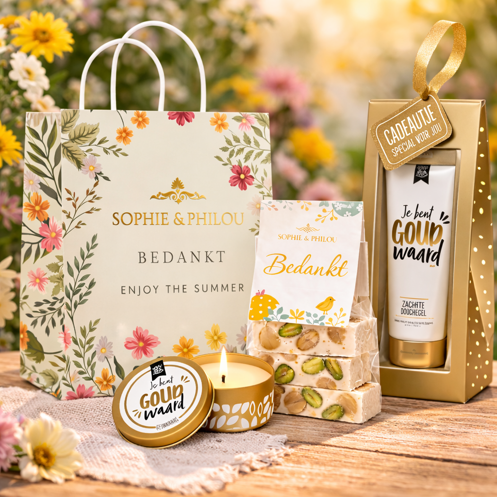 Laat waardering zien met een zomers cadeau vol aandacht. Frisse smaken, bloemige details en vrolijke verpakkingen zorgen voor een warm bedankmoment. Perfect voor de Dag van de Leraar, de Dag van de Leidster of andere bijzondere dagen. Op maat gemaakt en landelijk verzonden.