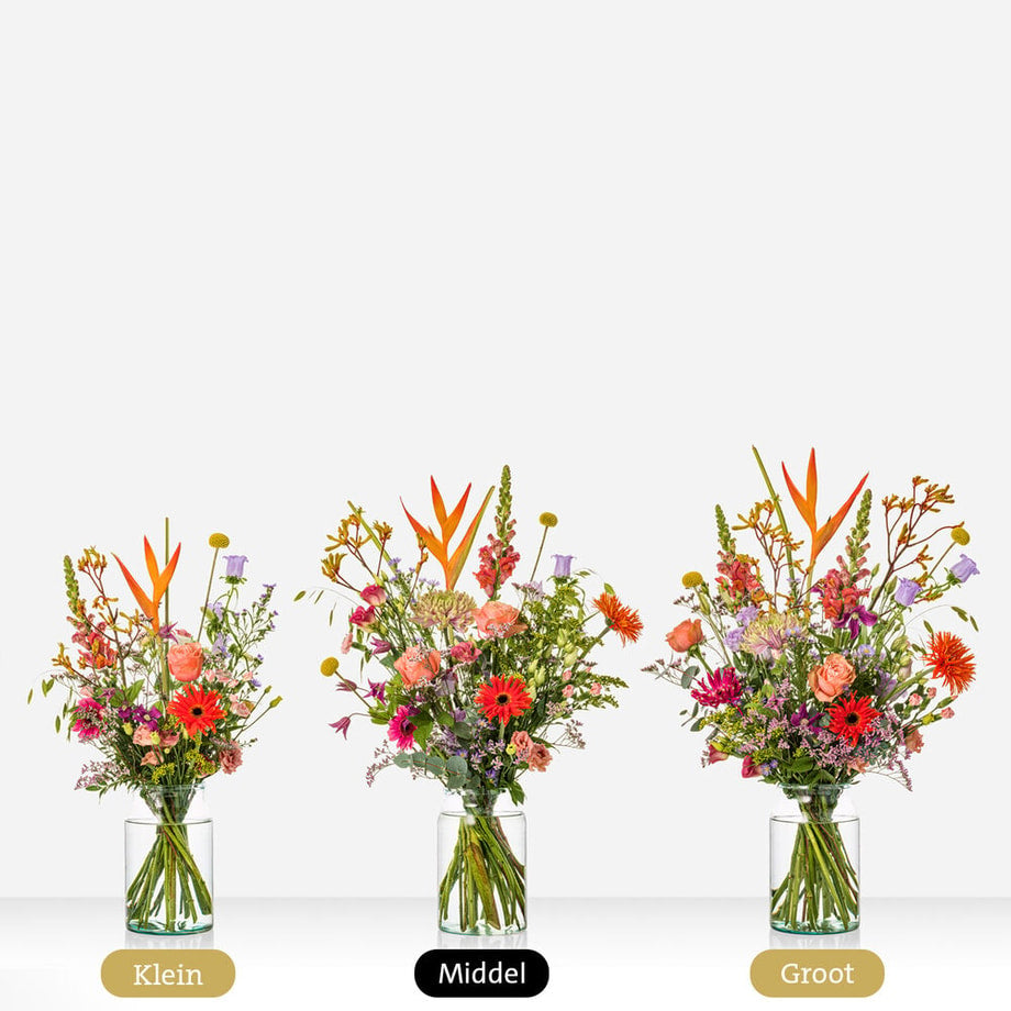 Laat iemand weten dat je aan hen denkt met ons kleurrijke Beterschap boeket, verkrijgbaar bij Wagemakerskoffie thee cadeau. Met een prachtige roos, gerbera en opvallende Heliconia is dit boeket een echte opkikker. Voeg een bijpassende vaas, luxe bonbons of heerlijke chocolade toe voor een extra hartverwarmend gebaar!