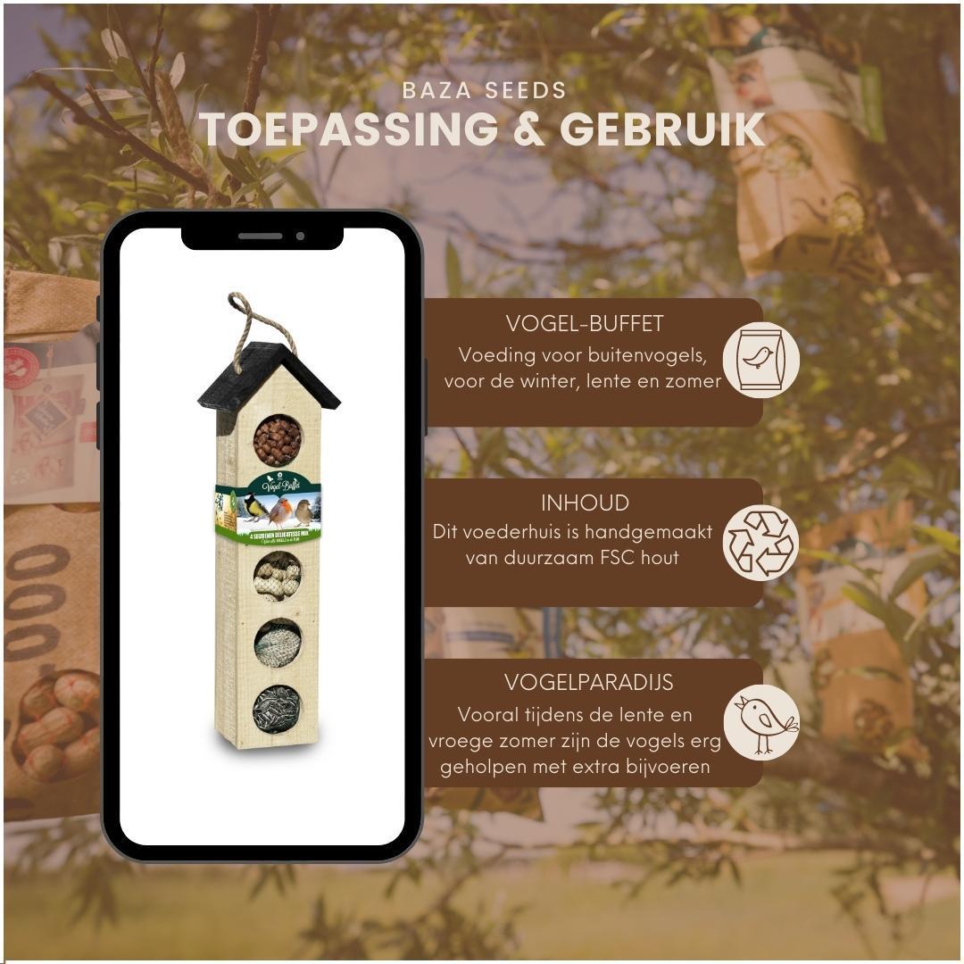 - Voederhuisje voor 4 seizoenen om het hele jaar door te voeren.