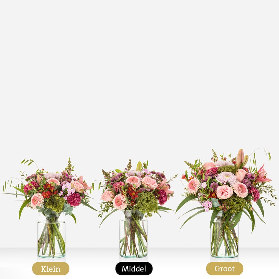 Verras met onze bestseller: een prachtig boeket in roze en roodtinten, gecombineerd met luxueuze bonbons. Negen handgemaakte chocolaatjes met romige pralinévulling, perfect als cadeau voor elke gelegenheid. Een feest voor het oog en de smaakpapillen, verkrijgbaar bij Wagemakerskoffie thee cadeau!