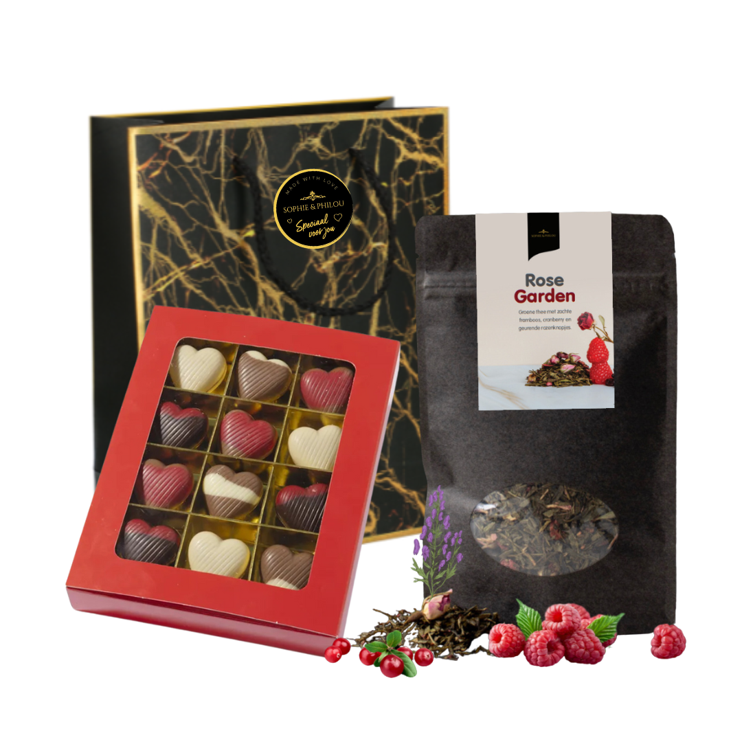 Bedank medewerkers of collega’s op de Dag van de Zorg, de Dag van de Leraar of met Pasen met dit luxe cadeau van Wagemakerskoffie thee cadeau! Dit stijlvolle pakket bevat verrukkelijke hartvormige bonbons van Sophie & Philou en de verfijnde Rose Garden thee. Een uniek geschenk dat waardering en warmte uitstraalt, perfect verpakt in een elegante cadeautas. Het ideale cadeau om te laten zien hoeveel u uw team waardeert. Bestel nu en geef een onvergetelijke blijk van waardering!