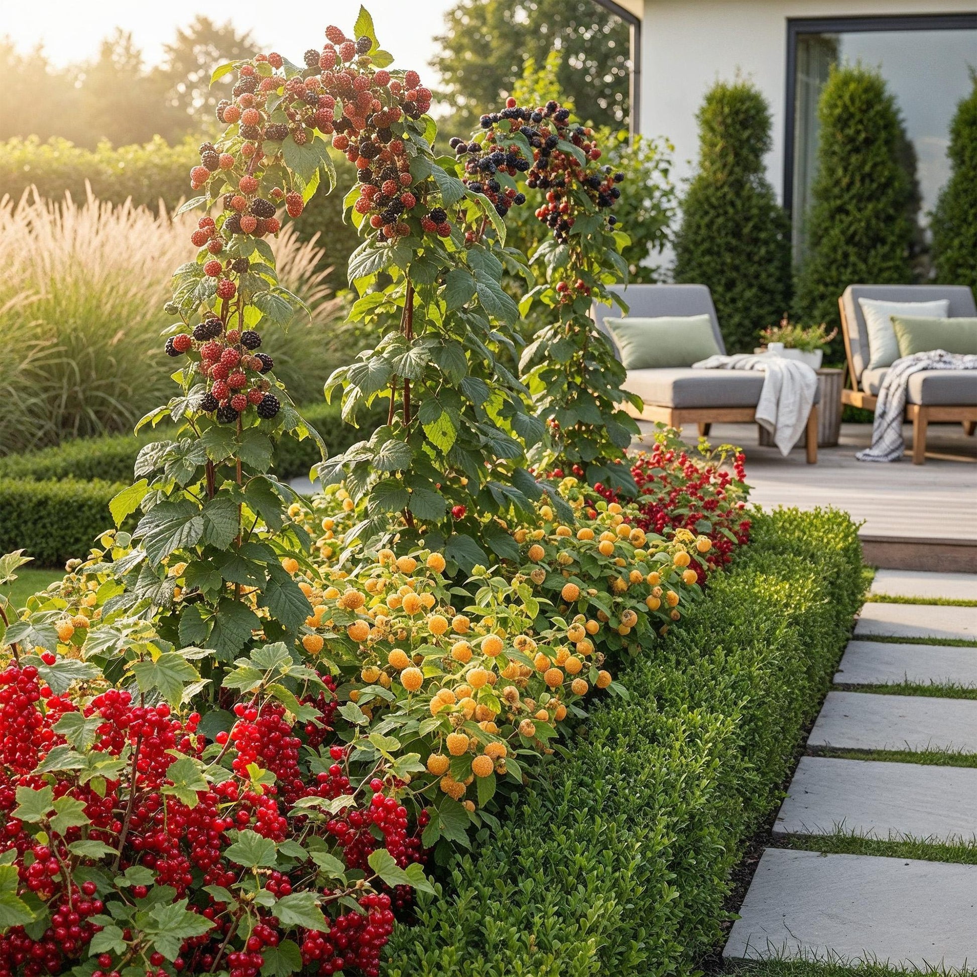 Green boutiQ - Fruitplanten - Tricolour - Rode Bes - Gele Framboos - Zwarte Braam - Winterhard - 3 Planten - Pot 9cm