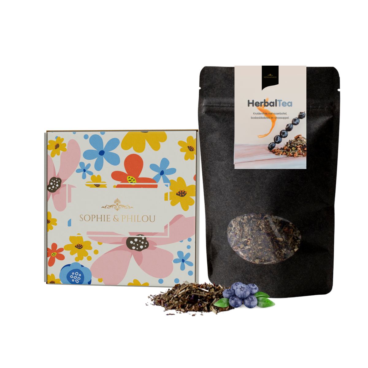 Ontdek de unieke blend van Sophie&Philou’s Kruiden thee, samengesteld uit zorgvuldig gekozen kruiden en specerijen voor een rustgevende ervaring. Geniet van de verfrissende munt, kalmerende kamille, en verwarmende kaneel in elke slok. Perfect voor elk moment, deze thee is een zintuiglijke traktatie die ontspanning biedt en je ziel voedt.