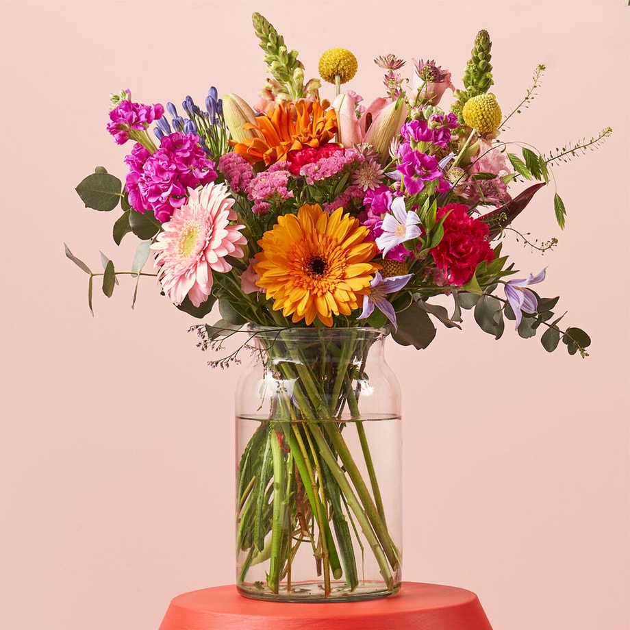 Laat iemand stralen met dit bonte boeket, samengesteld door de lokale vakbloemist en verkrijgbaar bij Wagemakerskoffie thee cadeau. Een rond, kleurrijk arrangement vol prachtige seizoensbloemen dat perfect is om te geven én te ontvangen!