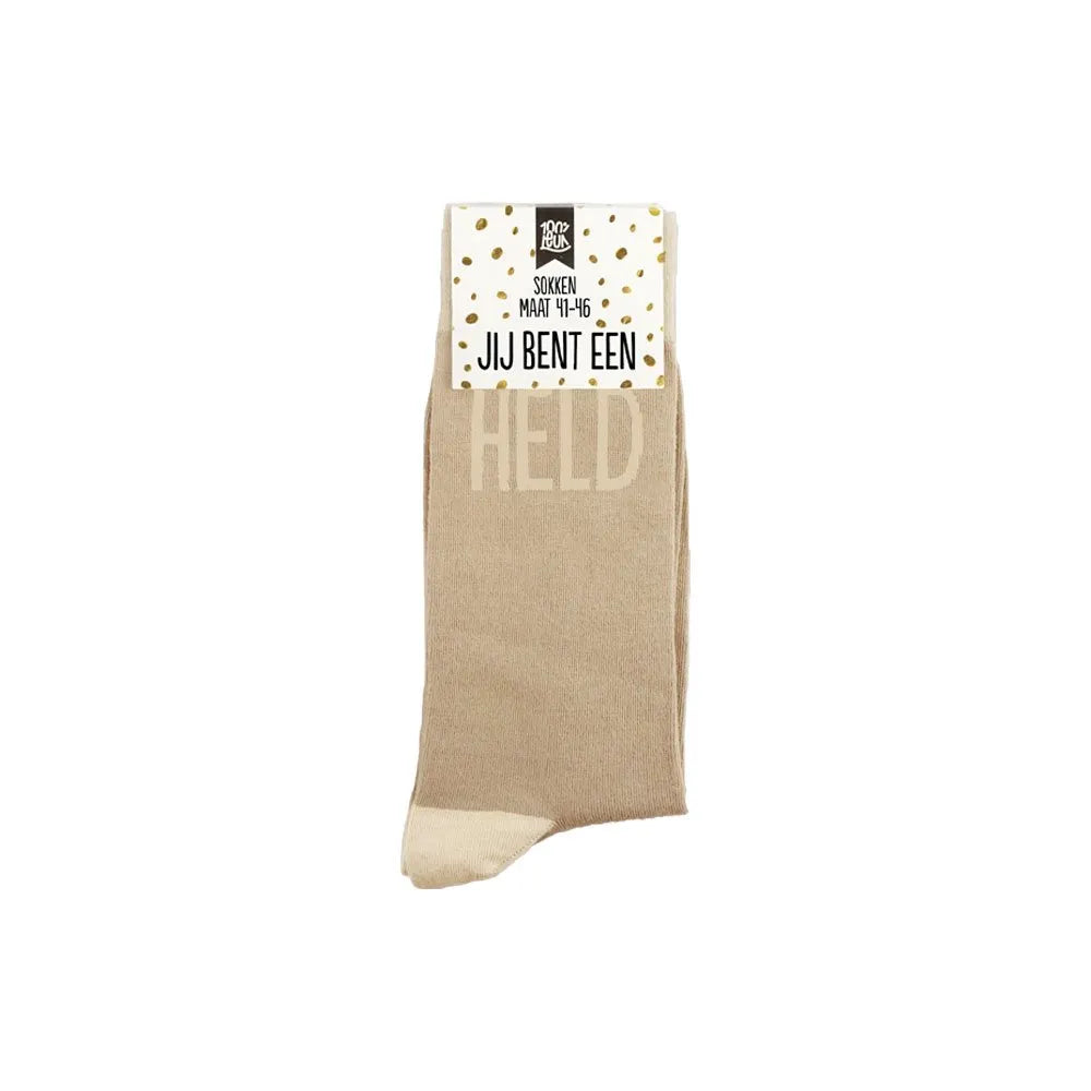 Jij bent een held op sokken! Wie is jouw held? Je vader die altijd voor je klaarstaat, je vrienden die je hebben geholpen, ze verdienen het allemaal. Cadeautip: voor een zorgheld op dag van de zorg!